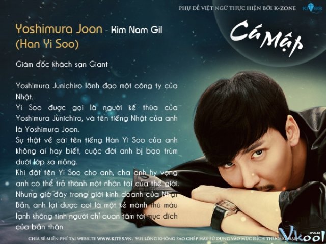 Shark : Bộ phim kể câu chuyện về một người đàn ông tên Han Yi Soo đã thay đổi diện mạo và thân phận của mình để quay lại trả thù cho cái chết của người cha 12 năm về trước, thậm chí vì trả thù mà anh đã chĩa mũi nhọn vào người phụ nữ anh yêu thương. Còn cô gái Jo Hae Woo là 1 công tố viên tốt bụng, tràn đầy nhiệt huyết, luôn khắc khoải mong nhớ về mối tình đầu của mình là chàng trai mang tên Han Yi Soo và cô quyết tâm tìm ra sự thật về cái chết năm xưa của Yi Soo và cha của anh.NHÂN VẬT